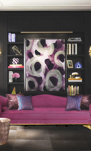یک اتاق نشیمن زیبا با تم مشکی طراحی شده توسط کوکت به همراه یک کاناپه کولت، دیوار کوب شول و نیز صندلی های ترسور به عنوان نقاط کانونی.