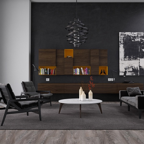 تضاد رنگی بین دیوار های مشکی و کف چوبی ترکیبی هستند که همیشه می توانید با خیال راحت بر سر آن برای استفاده در دکوراسیون اتاق نشیمن شرط بندی کنید.