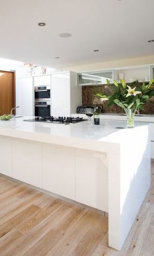 من اصرار دارم که کفپوشها سفید باشد و این منظره را دوست دارم و من نیز به آن کفپوش بلوطی طبیعی با طرح چپ و راست با امکان اضافه کردن لک برای نشان دادن تغییرات در کف را به آنها پیشنهاد میکنم .