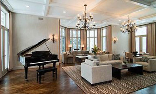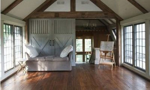 در این تصویر قسمت چپ اتاق کفچوش های بلوطی لکدار با تن صورتی است . اما در نقطه ای دورتر در قسمت گوشه راست شما میتوانید کف را با رنگ قهوه ای لکدار ببینید . بنظر من این طرح های شگفت انگیز کف چیزی به غیر از بلوطی هستند ولی رنگ آن میتواند با لک روی آن هماهنگ باشد . من قهوه ای را دوست دارم که به نارنجی یا طلائی نزدیک نباشد و طوری باشد که شما بتوانید رگه های چوب را در آن ببینید .