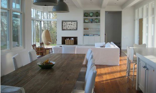 کفپوشهای سفید بلوطی هنگامی خود را بیشتر نشان میدهند که شما از درب و پنجره های مشکی استفاده کنید .