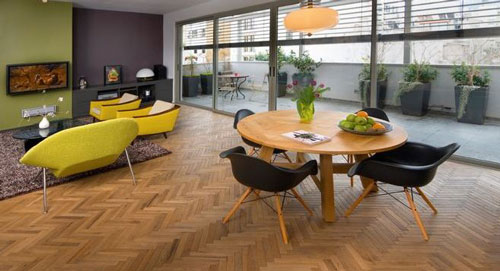 این طرحی است که ما میخواهیم کفپوش ما اینچنین باشد . اما این کار زمان زیادی لازم دارد و مبلغی که برای این کار باید پرداخته شود گران است . من اختلاف رنگ طبیعی چوب را دوست دارم ولی آنها بدو ن رنگ ، خام بنظر میرسند .