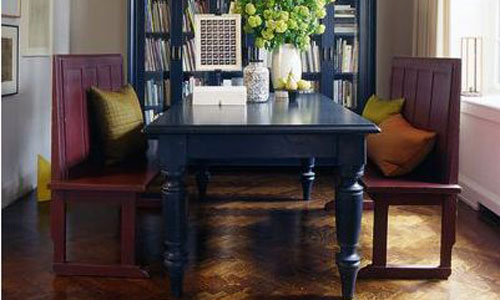 نصیحت: اگر رنگ میز و کف شما یکی است در اینجا فرشها میتوانند فضای یکرنگ را در هم بشکنند و یک تضاد بین رنگ کف و رنگ میز بوجود بیاورند .