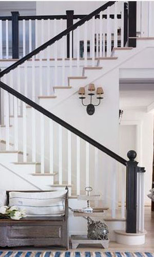 من رنگ مشکی نرده را دوست دارم . در خانه خودم من از دربهای مشکی با جداره های سفید استفاده میکنم . استفاده از پله های رنگ شده و نرده های لکدار یا مشکی باعث میشود پله ها روشن بنظر برسند . ستونهای مشکی به قدرت منزل اضافه می شود .