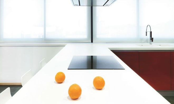 این میز که جنس آن کوارتز است میتواند نقش جزیره را هم داشته باشد .