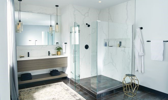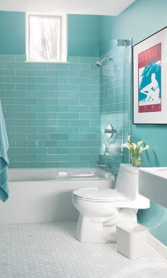بعضی ها پوشش پرده ای حمام خود را همچنان دوست دارند . ولی امروزه شیشه نقش قویتری از پرده دارد . پوششهای شیشه ای باعث میشود که فضا بازتر و هوای بیشتری وارد حمام میشود . نور طبیعی و جود دارد و کاشیهای حمام نیز به وضوح دیده میشوند .