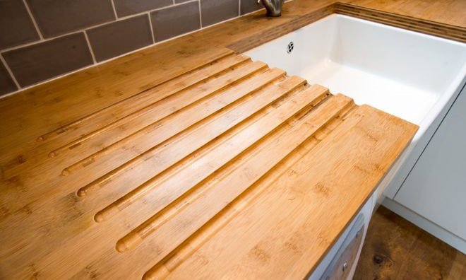یک تخته ساتوری ( تخته آشپزخانه) با یک ظرف خشک کن برای ظروف خیس با یک لبه مخروطی شکل ، منظره آشپزخانه شما را تغییر میدهد .