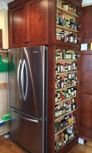 بنظر جای دادن وسایل تمیز کننده مثل جارو ، برس ، زمین شور، چوب گردگیری کار مشکلی است، این وسایل باید همیشه در دسترس باشند . مالکین خانه ها همیشه بدنبال یک چنین فضایی در داخل کابینت هستند ، ولی با استفاده از یک تاکتیک بسیار راحت میتوان در فضای بین دیوار و یخچال این وسایل را جاسازی کرد .