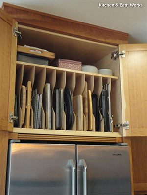 ۷. قفسه های بالایی سینی نگهدارنده مواد غذایی. برخی از مشتریان به سطوح و قفسه های بسیار عریض و یا مرتفع برای نگهداری مواد غذایی احتیاج ندارند. اگر این مورد برای شما نیز اتفاق افتاده است، توجه داشته باشید که در برخی طراحی ها، در قسمت بالایی سینی نگهدارنده مواد غذایی قرار گرفته است. این قفسه به معنای محل اضافه برای نگهداری مواد می باشد.