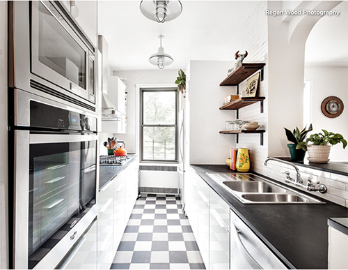 ۱. پانل کناری یخچال. اکثر طراحان آشپزخانه، از یخچال و فریزر در طراحی های خود استفاده می کنند. آنها این کار را با اضافه کردن پانل های کناری یخچال و فریزر با طرحی هم شکل کابینت ها انجام می دهند. ارتفاع پایه های کابینت را به نصف اینچ کاهش می دهند. فقط عمق پانل های یخچال باید به اندازه کافی باشد، به طوری که یخچال را به راحتی در خود جای دهد. در غیر این صورت، به جای همگام شدن با سطح پانل ، جلوتر از آن قرار می گیرد.