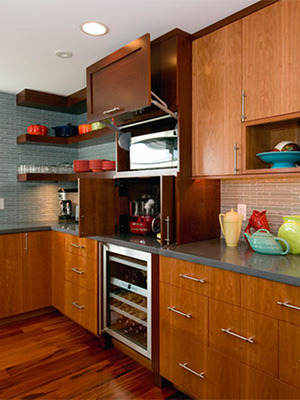 هنوز هم مایکروویو یک بخش جدایی ناپذیر از آشپزخانه ها می باشد. این دستگاه برای گرم کردن نوشیدنی ها و یا مواد غذایی مورد استفاده قرار می گیرد. اکثر مشتریان ترجیح می دهند که از مایکروویو بدون اشغال کردن فضای زیادی از آشپزخانه استفاده نمایند. یکی از گزینه ها برای پنهان کردن مایکروویو ، قرار دادن آن در کابینت های بالایی با درب مخفی است.